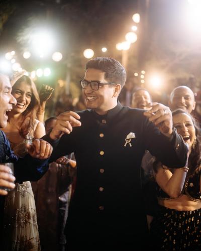 संगीत सोहळ्यात प्राजक्ता वृशांकसोबत थिरकताना दिसली. तिच्या हातात शँपेनचा ग्लासदेखील पाहायला मिळत आहे. या फोटोंना चाहत्यांची पसंती मिळताना दिसते आहे.