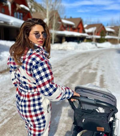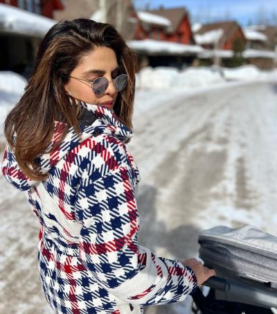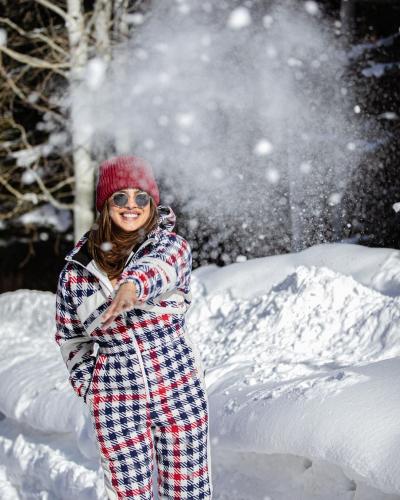 निक आणि प्रियांका बर्फात एन्जॉय करताना दिसत आहेत. अभिनेत्रीच्या लूकबद्दल बोलायचे तर तिने पांढरा जंपसूट घातला असून त्यावर लाल आणि निळ्या रंगाचे चेक प्रिंट आहेत. यासोबतच ग्रे शेड्सही कॅरी केले आहेत.