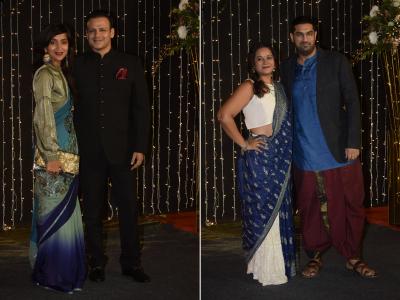 विवेक ऑबेरॉय त्याच्या पत्नीसोबत रिसेप्शनमध्ये दिसला.