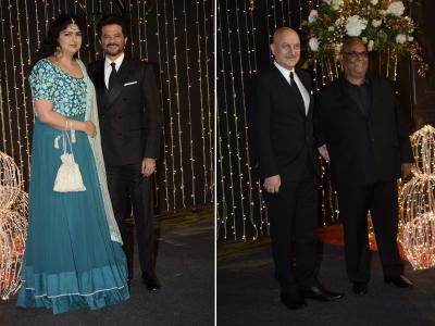 अनिल कपूर पुतणी अंशुलासोबत उपस्थित होता तर अनुपम खेर आणि सतिश कौशिक हे दोघे या रिसेप्शनच्या निमित्ताने कित्येक दिवसांनी भेटले