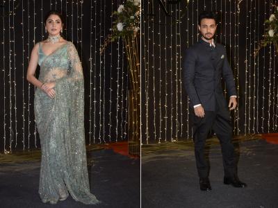 अनुष्का शर्मा साडीत खूपच छान दिसत होती तसेच आयुष शर्मा देखील कुल अंदाजात दिसला.