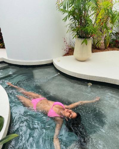 गुलाबी बिकिनीतही तिने एक फोटो शेअर केला आहे. यामध्ये ती पाण्यात झोपलेली आहे. खूप सुंदररित्या हा फोटो क्लिक करण्यात आला आहे.