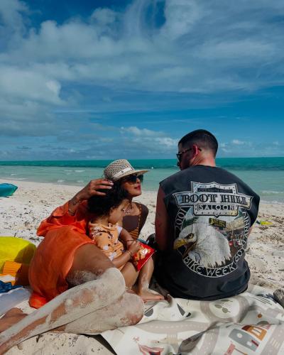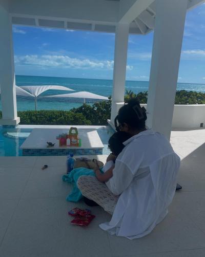 तर आणखी एका फोटोत ती व्हाईट शर्टमध्ये दिसत आहे. समोर समुद्राचा सुंदर नजारा आहे. मालती मेरीला मांडीवर घेऊन ती आरामात बसलेली आहे.