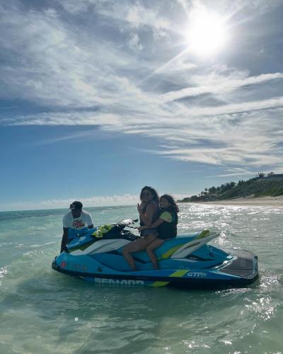 याशिवाय समुद्रात वॉटर स्पोर्ट्सचाही आनंद लुटतानाचा फोटो प्रियंकाने शेअर केला आहे. वॉटर जेटमध्ये बसून तिने पोज दिली आहे.
