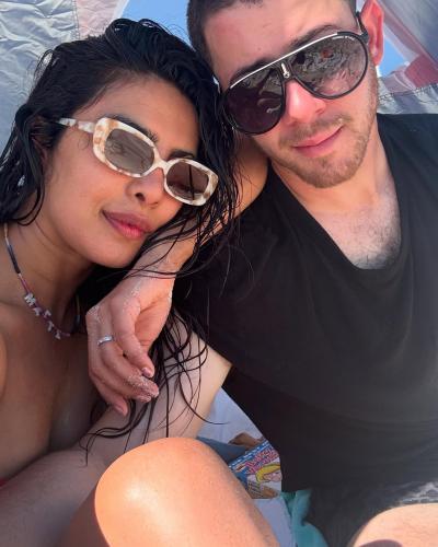 प्रियंकाने समुद्रकिनारी न्यू इयर साजरा केला. यावेळी तिने निक जोनाससोबत बिकिनीत पोज दिली. लाल बिकिनी, लाल हॅट आणि गॉगल यामध्ये ती अगदी फॉरेनरच दिसत आहे. तर निक जोनास ब्लॅक कॅज्युअल आऊटफिटमध्ये स्मार्ट दिसतोय.
