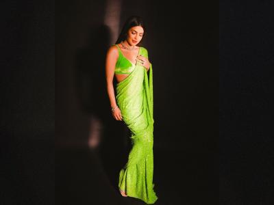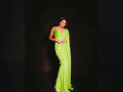 प्रियंका कायमच तिच्या ग्लॅमरस अदांनी सर्वांचे लक्ष वेधून घेते. तिच्या निखळ हास्याने ती सर्वांच्या मनात जागा निर्माण करते. यावेळी तिनं हिरव्या रंगाची साडी नेसली होती.
