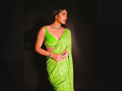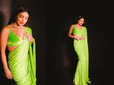 हिरव्या साडीत खुललं 'देसी गर्ल'चं सौंदर्य; प्रियांकाच्या ग्लॅमरस अदांनी चाहते 'घायाळ'