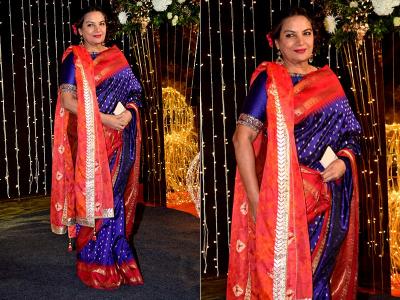 सिल्क साडी नेसलेल्या शबाना आझमी याही रिसेप्शनमध्ये पोहोचल्या.