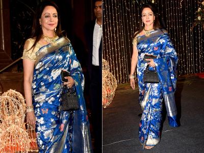 हेमा मालिनी यांची निळ्या रंगाची सिल्क साडीत अशी एन्ट्री घेतली.