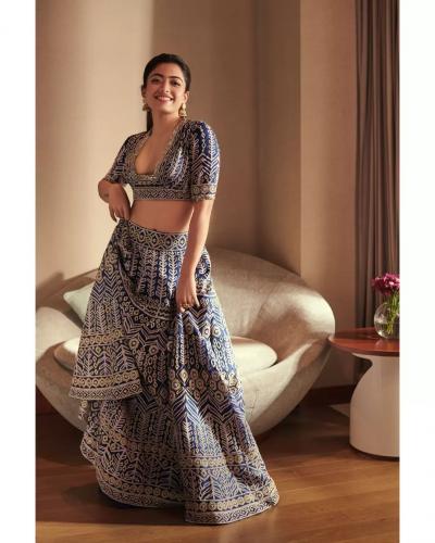 रश्मिका मंदानाने नुकतेच ब्लू रंगाच्या लेहंग्यातील फोटो शेअर केले आहेत.