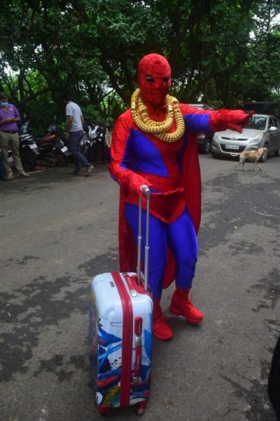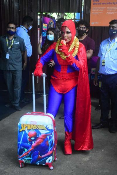 पापाराझींसमोर राखीने स्पायडर वूमन बनून अनेक पोज दिल्या.
