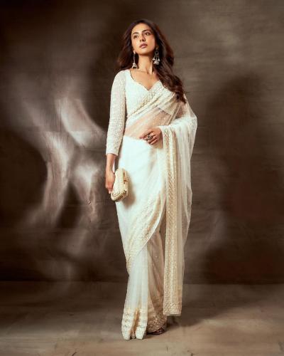 या फोटोंमध्ये रकुल पांढऱ्या रंगाच्या साडीत दिसत आहे, ज्यासोबत तिने मॅचिंग ब्लाउज कॅरी केला आहे. (फोटो: इंस्टाग्राम)