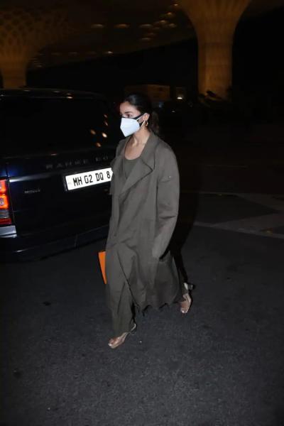 फोटोंमध्ये आपण पाहू शकतो की आलिया भट्टने ऑलिव्ह हिरव्या रंगाच्या टी वर त्याच रंगाचा ट्रेंच कोट घातला होता, जी तिने ट्राउझर्ससोबत पेअर केला आहे. (फोटो क्रेडिट्स: विरल भयानी)