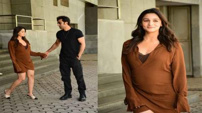 यादरम्यान रणबीरही आलियाला सांभाळताना दिसला. हाय हिल्स घालून आलियाने रणबीरसोबत रोमँटिक पोज दिल्या, त्यानंतर या फोटोंना खूप पसंती दिली जात आहे.
