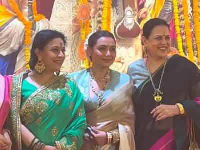 दुर्गापूजेला राणी मुखर्जी आणि काजोलने वेधलं लक्ष