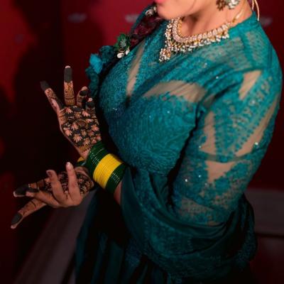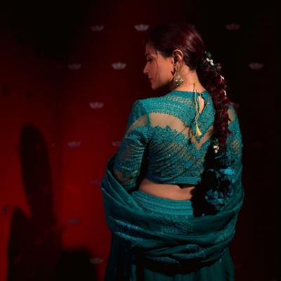 मेहंदी सोहळ्यासाठी रिचाने ग्रीन कलरचा लहंगा निवडला होता. त्यावर स्टायलिश पोनी आणि हेवी ज्वेलरी असा तिचा लुक होता.