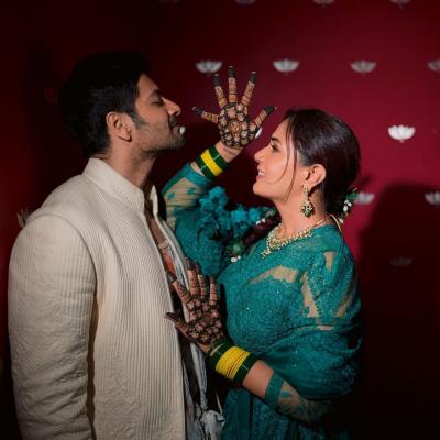 मेहंदी सेलिब्रेशनदरम्यान रिचा अलीसोबत नॉटी पोझ देताना दिसली. दोघंही एकमेकांत हरवलेले दिसले.