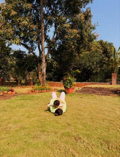 घरासमोरील बागेत मायलेकाचा हा छानसा फोटो कॅमेऱ्यात कैद करण्यात आला आहे. उंच झाडं, ऊन आणि हिरवीगार जागा या सान्निध्यात सागरिका लेकासोबत क्वॉलिटी वेळ घालवत आहे.