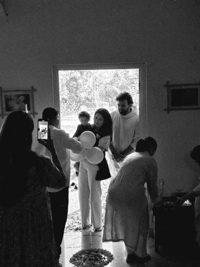 कोल्हापूरच्या घरात त्यांचं छान स्वागत झालं. छोट्या फतेहसाठी फुगे दिसत आहेत. तर लेक आणि जावयाच्या स्वागतासाठी फुलांची छान सजावटही केलेली दिसत आहे.