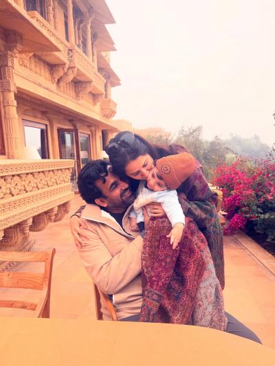 सागरिका, जहीर आणि फतेहचे फोटोही खूप क्युट आले आहेत. समोर त्यांचे दोन पाळीव श्वानही आहेत. फतेह त्यांच्याकडे कौतुकाने पाहताना दिसतोय.