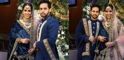 सायनाचा पती पी. कश्यप यानेही इंडिगो कलरची शेरवानी घातली होती. रिसेप्शन पार्टीतील दोघांचाही रॉयल लूक पाहण्यासारखा होता. पी. कश्यपने आपल्या शेरवानीसोबत तुस्सार जॉर्जेटची शाल कॅरी केली होती. या शॉलच्या बॉर्डरवर गोल्डचे वर्क केले होते.
