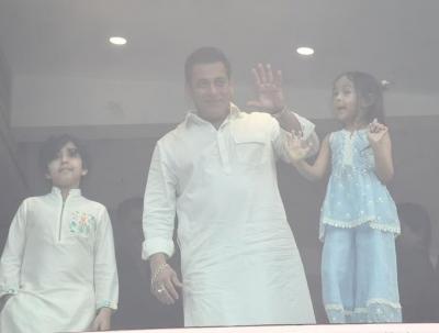 सलमान ईदच्या दिवशी छोट्या मुलीचा हात धरुन तिला गॅलेक्सीच्या गॅलरीत घेऊन आला. सलमान पांढऱ्या पठाणी कुर्त्यामध्ये सर्वांचं लक्ष वेधून घेत होता.