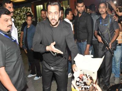 सर्व पापाराझींसमोर सलमानने केक कट करत सेलिब्रेशन केले. सौजन्य filmfare