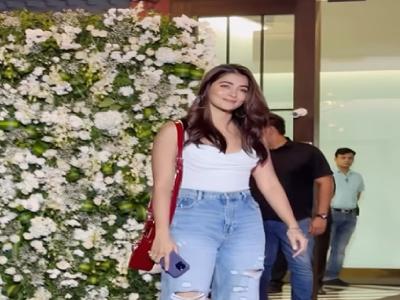 अभिनेत्री पूजा हेगडे डेनिम आणि व्हाईट टॉप अशा सिंपल लुक मध्ये दाखल झाली.