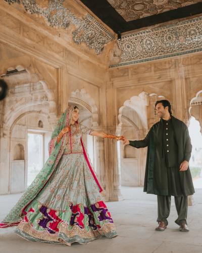 तर तिचा पती अमीर गिलानीने शेरवानी घातली आहे. दोघांचाही लूक चर्चेत आहे.