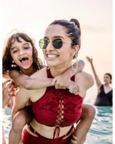 श्रद्धा कपूर मालदीवमध्ये दिसली बीच पार्टी करताना, रेड वेलवेट ब्रालेट ड्रेसमध्ये दिसली ग्लॅमरस