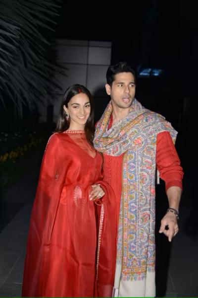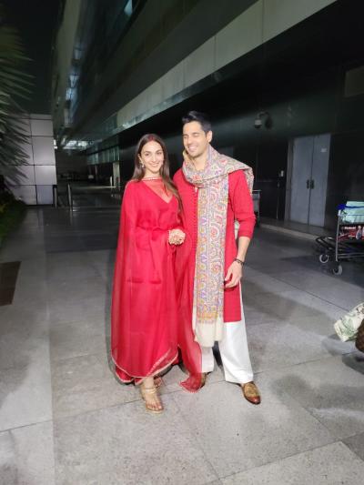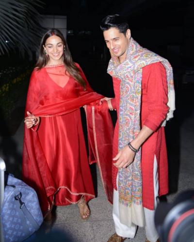 लाल रंगाचा सलवार सूट, भांगेत कुंकू, हातात चूडा, गळ्यात मंगळसूत्र, मोकळे केस आणि चेहऱ्यावर न मावणारा आनंद अशा थाटात नववधू कियाराची दिल्ली विमानतळावर एन्ट्री झाली.
