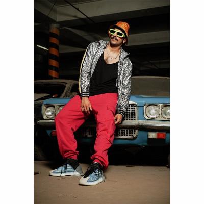 रणवीरने आकाशी रंगचा टी-शर्ट आणि पँट परिधान केली आहे. त्यावर जॅकेट घातले असून गळ्यात सोन्याच्या चेन घातल्या आहेत.