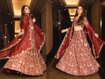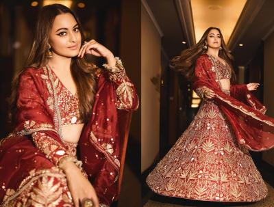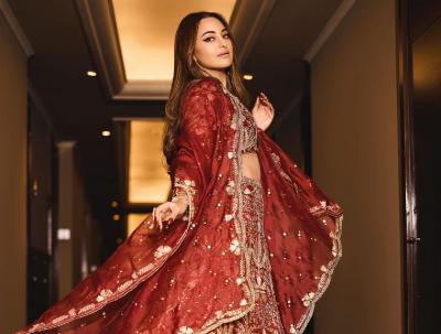 अभिनेत्री सोनाक्षी सिन्हा लाल लेहेंग्यातील रॉयल लूक; पाहा फोटो!