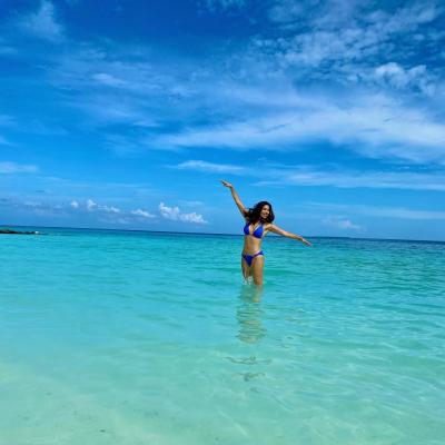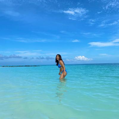 या फोटोंमध्ये सोफी चौधरी ग्लॅमरस अंदाजाच बीचवर मस्ती करताना दिसते आहे. (Photo Instagram)