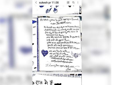 सुकेश चंद्रशेखरने पत्र हिंदीत लिहिलं असून त्याचा एक फोटो सध्या सोशल मीडियावर जोरदार व्हायरल होत आहे. अनेक चुका असलेल्या या पत्रात सुकेश रोमँटिक होताना दिसत आहे. याआधी देखील त्याने अनेकदा पत्र लिहिलं आहे.