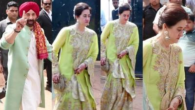 लेक करणच्या लग्नात पहिल्यांदाच कॅमेऱ्यासमोर आली सनी देओल यांची पत्नी, पूजाच्या साधेपणाने जिंकली नेटकऱ्यांची मनं