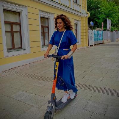 या फोटोत मास्कोच्या रस्त्यावर तापसी स्केट सायकलिंगचा आनंद घेताना दिसतेय.
