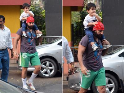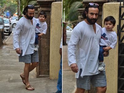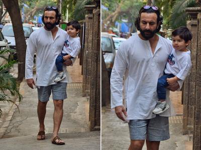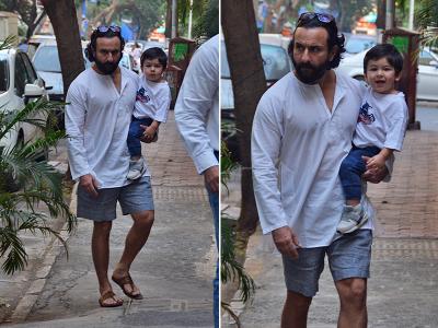 तैमुरला खांद्यावर घेऊन सैफ त्याला फिरायला घेऊन गेला होता.