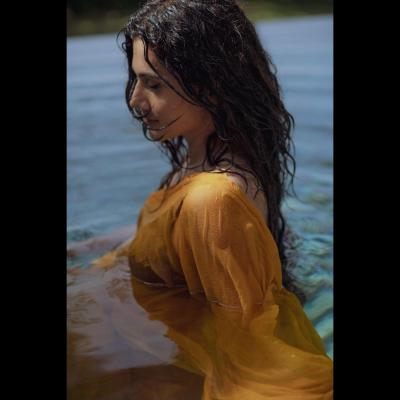 कपाळावर बिंदी, पिवळी साडी परिधान करत ती पाण्यात उतरली आहे. भिजलेल्या अवस्थेत ती चाहत्यांच्या हृदयाचा ठोका वाढवत आहे. तिचा हा लूक आकर्षित करत आहे.