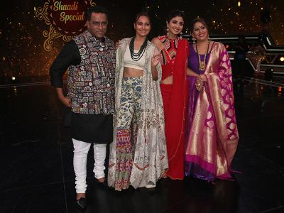 सोनाक्षीने सुपर डान्सरचे परीक्षक अनुराग बासू, शिल्पा शेट्टी आणि गीता कपूर यांच्यासोबत खूप धम्माल केली.