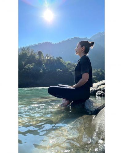 कधी दोघेही नदी झरे पार करताना दिसतात. ऋषिकेशचं सुंदर वातावरण या फोटोंमधून दिसून येतं.