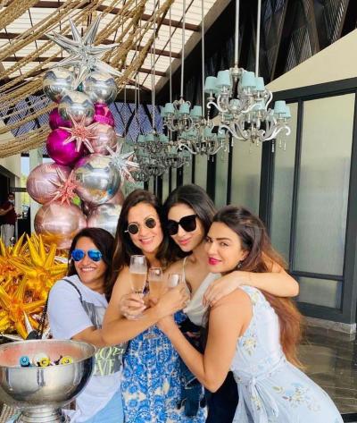 फोटोंच्या माध्यमातून आशकाने मौनीच्या बॅचलर पार्टीची हिंट दिली आहे. यात सर्वजणी धम्माल मस्ती करताना दिसत आहेत.
