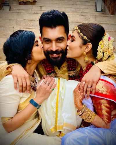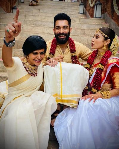मंदिरा बेदीने लग्नानंतर नवरा-नवरीसोबतचे काही सुंदर फोटो शेअर केले आहेत. यात मौनी व सूरजच्या चेहऱ्यावरचा आनंद बघण्यासारखा आहे.