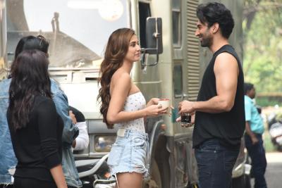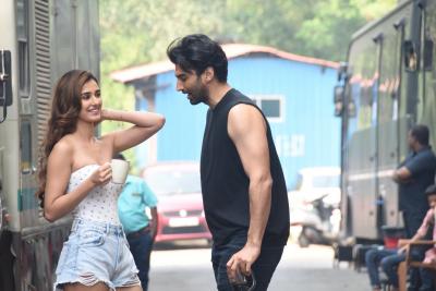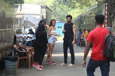 दिशा पटानी व आदित्य रॉय कपूर यांचा सेटवरील फोटो