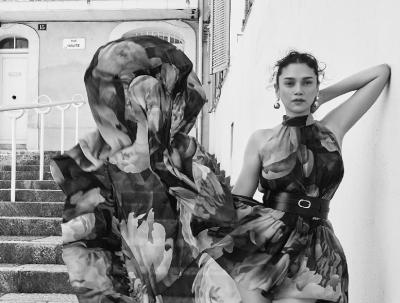 अदिती राव हैदरीनं तिच्या लूकसाठी पिवळ्या आणि काळ्या रंगसंगतीच्या फ्लोरस ड्रेसची निवड केली. यासोबत तिनेगोल्डन कानातले आणि मेसी हेअर बन केला होता.