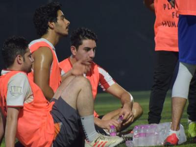 फुटबॉल ग्राउंडवर रेफ्री व प्लेयर्स