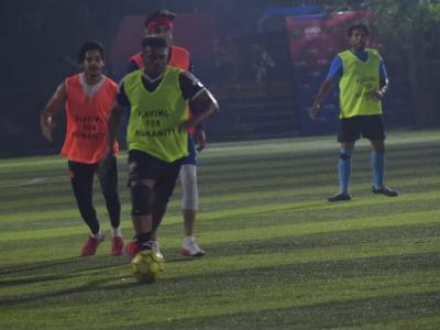 रणबीर कपूर हे बी- टाऊन सेलिब्रेटीबरोबर जुहूमध्ये फुटबॉल खेळताना