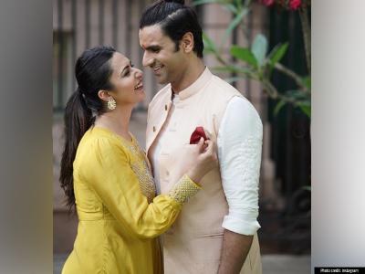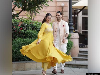 या फोटोत दिव्यांका त्रिपाठीने पिवळ्या रंगाचा अनारकली ड्रेस परिधान केला आहे तर विवेक दहियाने कुर्ता-पायजमा घातलेला दिसतो आहे.