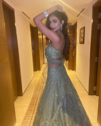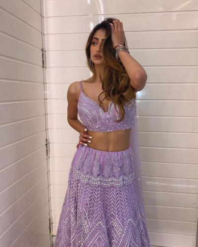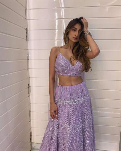 आकर्षक असा इंडोवेस्टर्न लेहंगा तिने परिधान केला आहे.