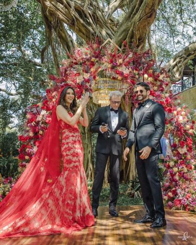 शिबानी दांडेकरचा लग्नातील लूक सध्या चर्चेत आला आहे.
